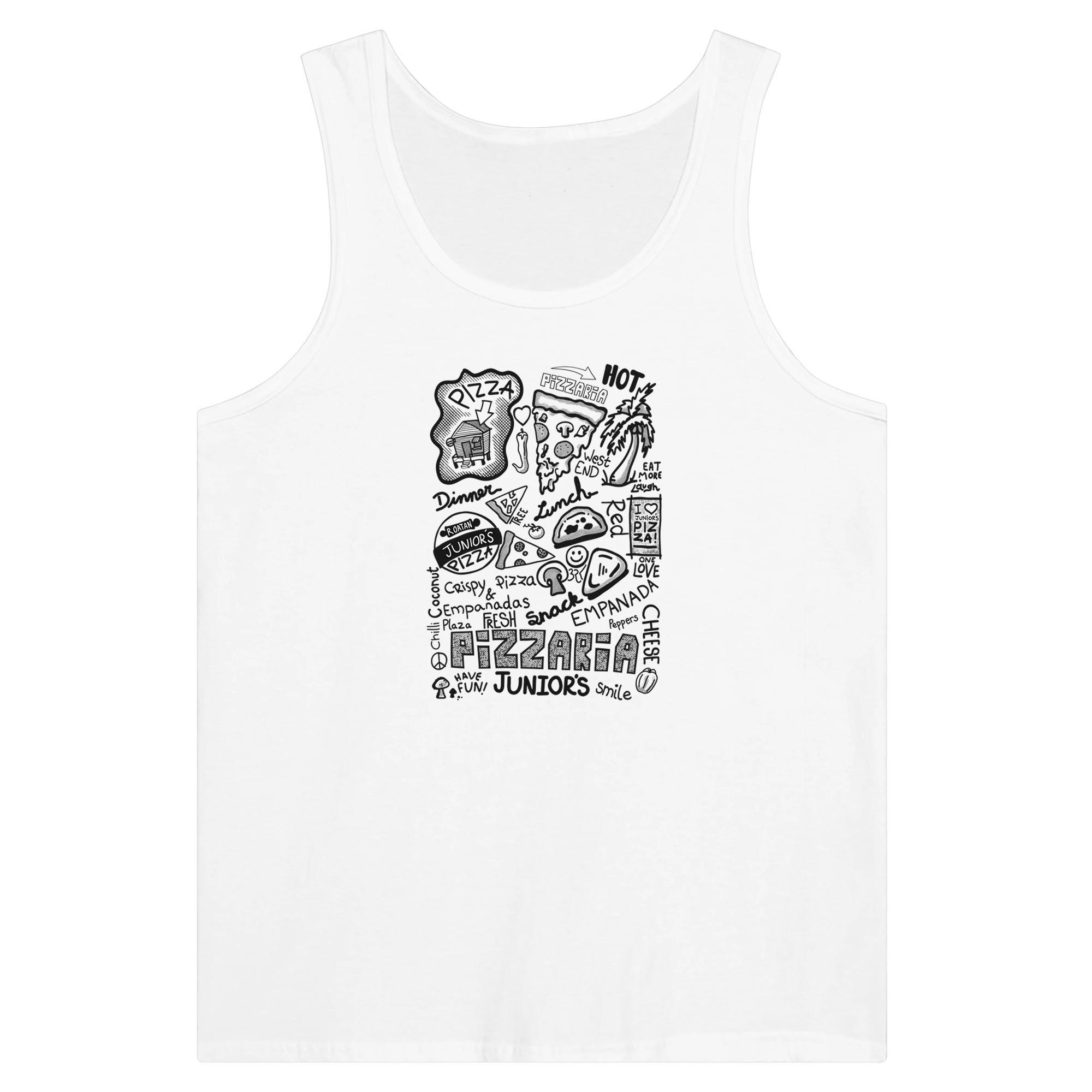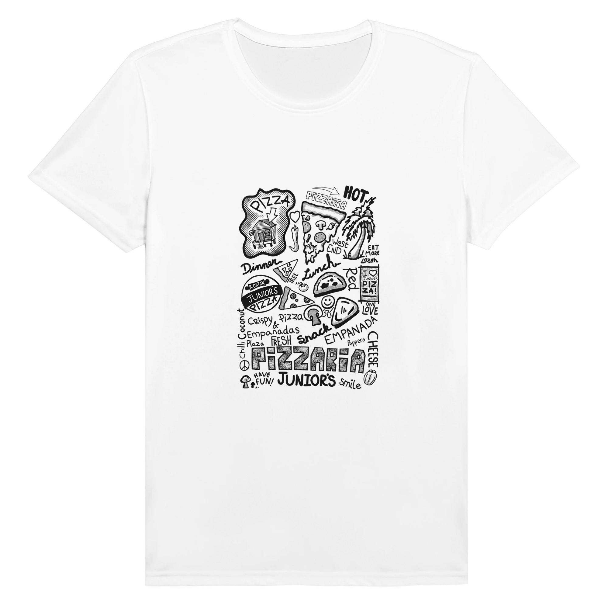 If you're going to Roatan you must stop in and have a Pizza or Empanada at Junior's Pizzaria in West End. Where this shirt and say hi to Junior. Not only does he make the best pizza and empanadas on the island he is a wealth of knowledge about the wonderful island.